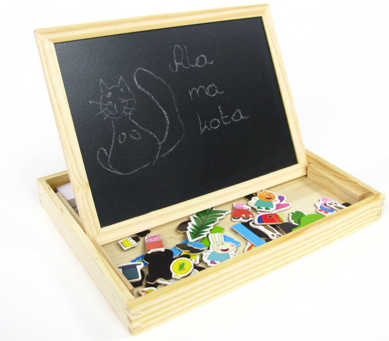 Z jednej strony planszy możliwe jest pisanie kredą, natomiast po drugiej stronie swobodnie można mazać pisakiem.